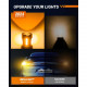 - (600% Increase Brightness)The upgraded high-brightness 3030-SMD chips precisely embedded in the 3157 Led light bulb.360° full view angle, No dark spots,No shadow,Delivering pure amber yellow color lighting output for superior visibility and safety in all directions.